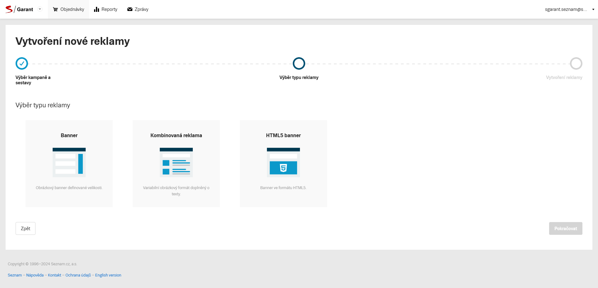 Vyberte, jaký typ reklamy chcete vytvořit, a přejděte do dalšího kroku.
