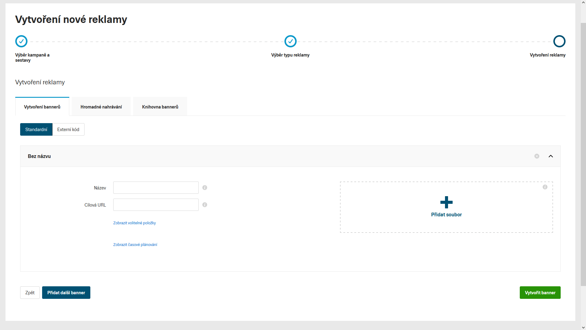 - Při vytváření reklamy přejděte do záložky Knihovna bannerů / Knihovna externích kódů
