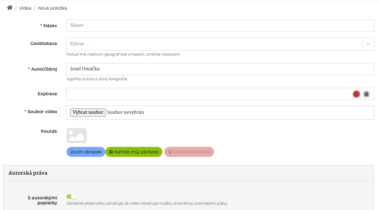 - Autor/Zdroj – Uveďte, kdo je autorem videa nebo z jakého zdroje pochází.