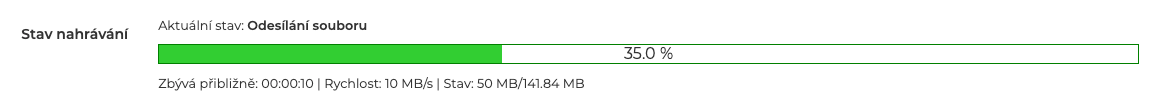 Jakmile se video nahraje ve formuláři se objeví status zpracování.