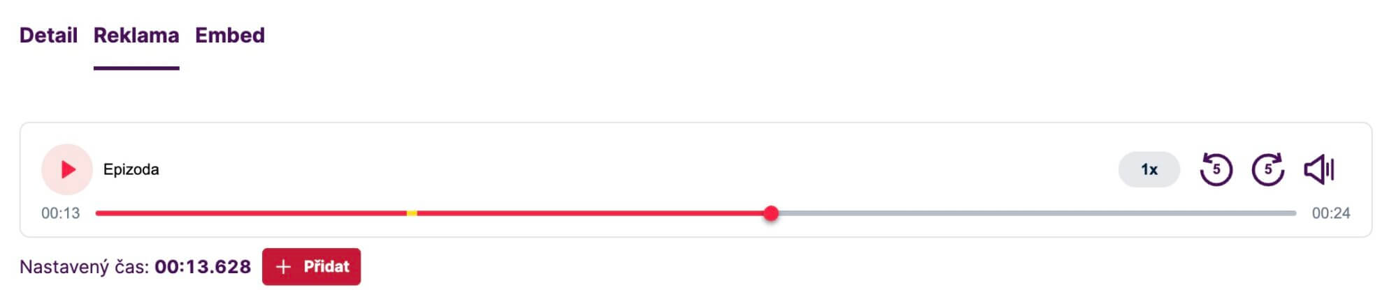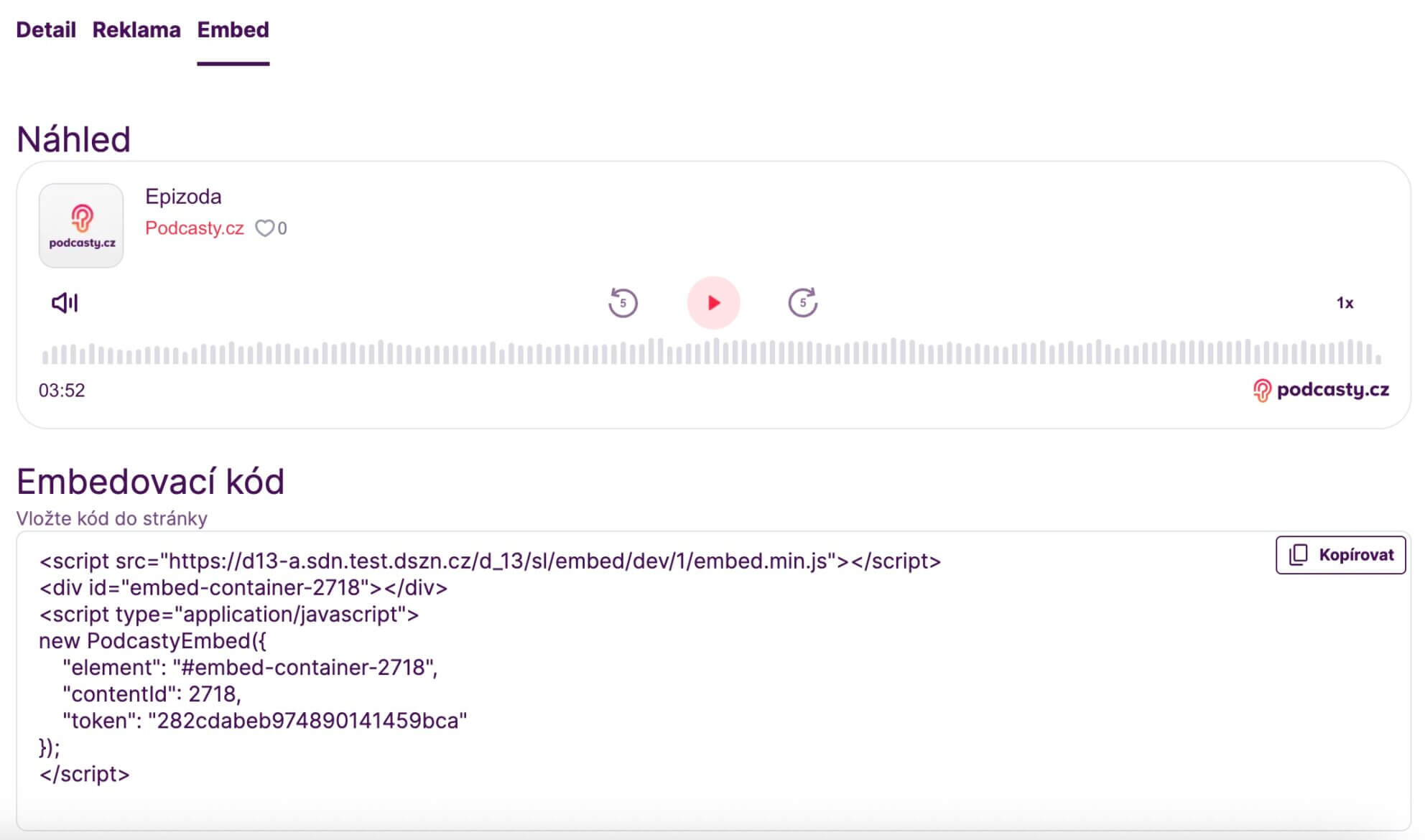 - Pro každou epizodu na záložce embed získáte unikátní embedovací kóde pro danou epizodu