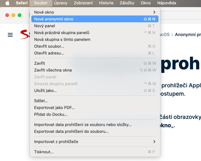 Funkce anonymního prohlížení je v prohlížeči Apple Safari nazvána „Anonymní okno“ a aktivujete ji následujícím postupem.