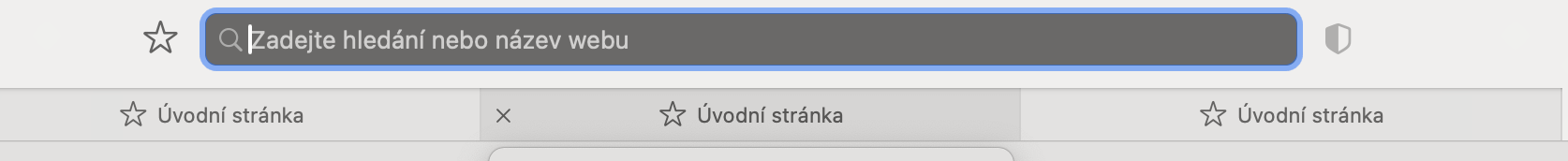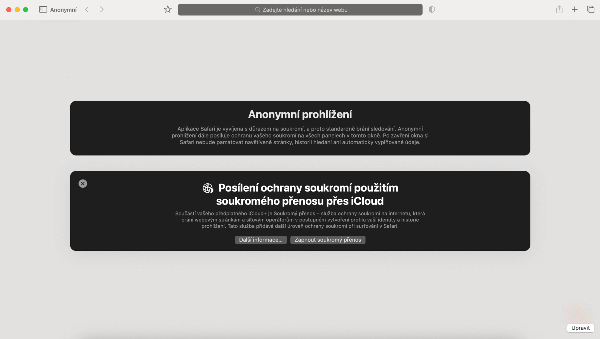 - Anonymní okno je vždy označeno tmavým pozadí adresního a vyhledávacího řádku.