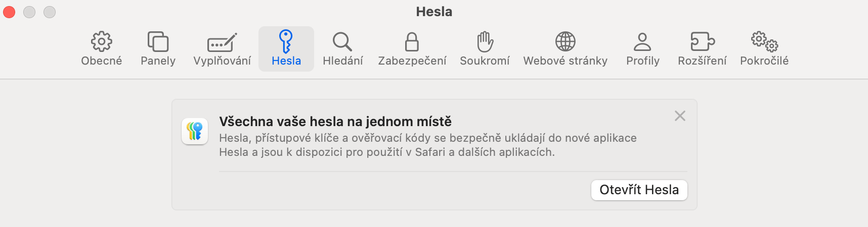 Při přihlašování na stránky služeb, zabezpečených heslem, je možné si jméno a heslo uložit do prohlížeče. Uložená hesla si můžete v prohlížeči Apple Safari zobrazit pomocí následujícího postupu: