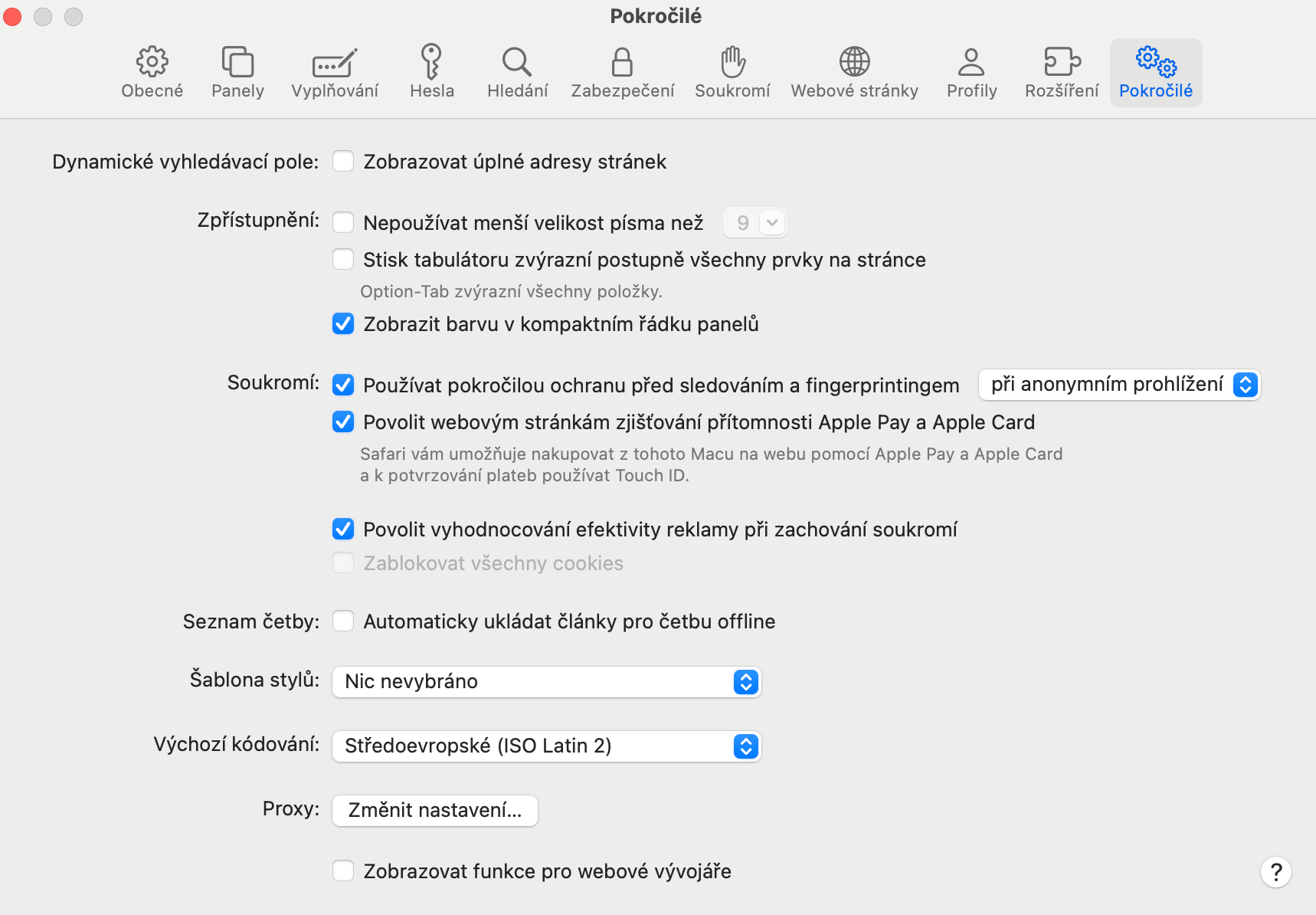 - V části „Soukromí“ v části „Cookies a data stránek“ nesmí být zatrženo „Zablokovat všechny cookies„.