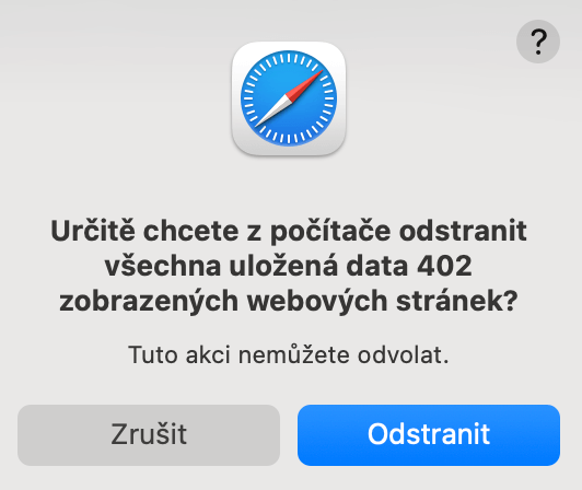- V zobrazeném dotazu potvrďte smazání dat tlačítkem „Odstranit„.