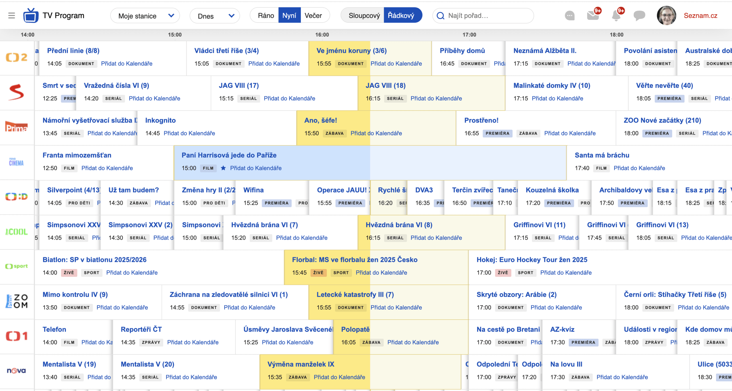 Řádkové zobrazení pořadu