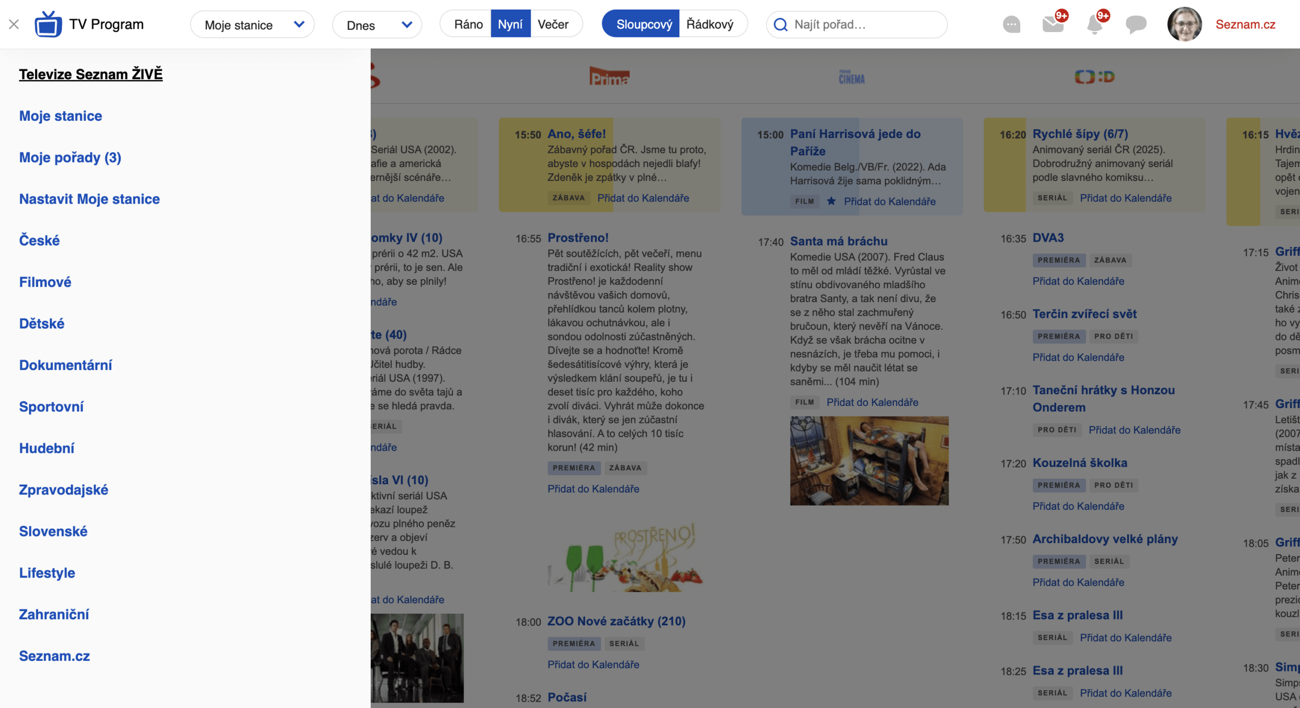 – Kliknutím přepínáte zobrazení pořadů buď na aktuálně vysílané, nebo večerní či ranní pořady
