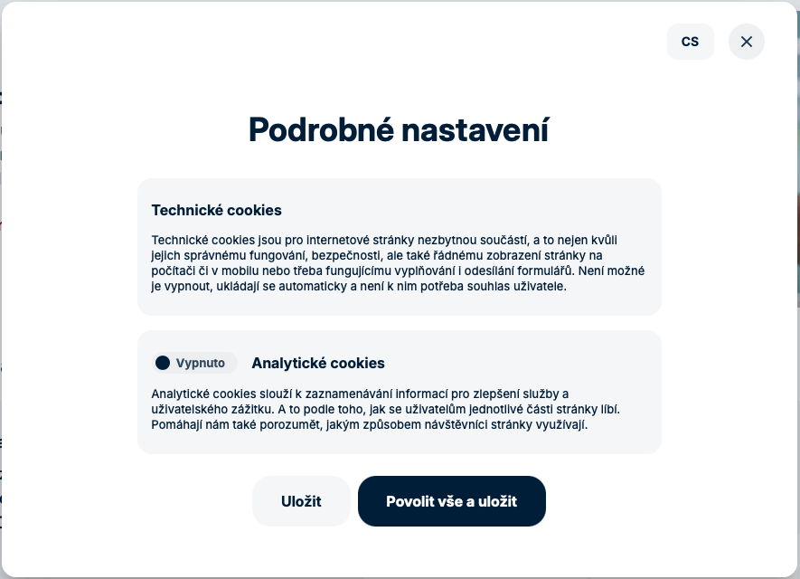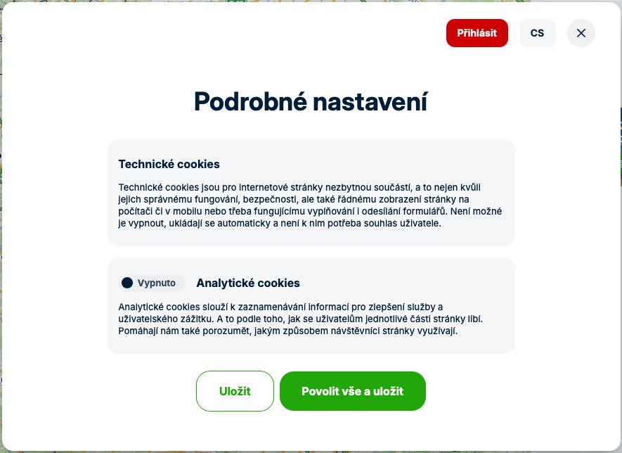 Pokud vás zajímá více podrobností, můžete se z lišty prokliknout do podrobného nastavení. Tam najdete vysvětlení, co analytické cookies dělají, a možnost jejich individuálního zapnutí nebo vypnutí. Můžete si také rovnou nastavit vše najednou pomocí tlačítka „Povolit vše a uložit“. V podrobném nastavení se také můžete přihlásit ke svému Seznam účtu.