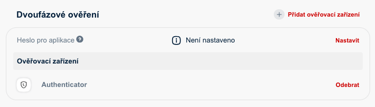 Seznam vašich Ověřovacích zařízení naleznete v Seznam Účtu, přehledně pod sebou i s časem přidání.