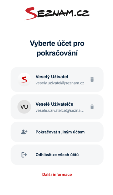You can add any Seznam.cz accounts, including those with domains like @seznam.cz, @email.cz, @post.cz, custom domains, phone number-based accounts, and Email Profi accounts.
