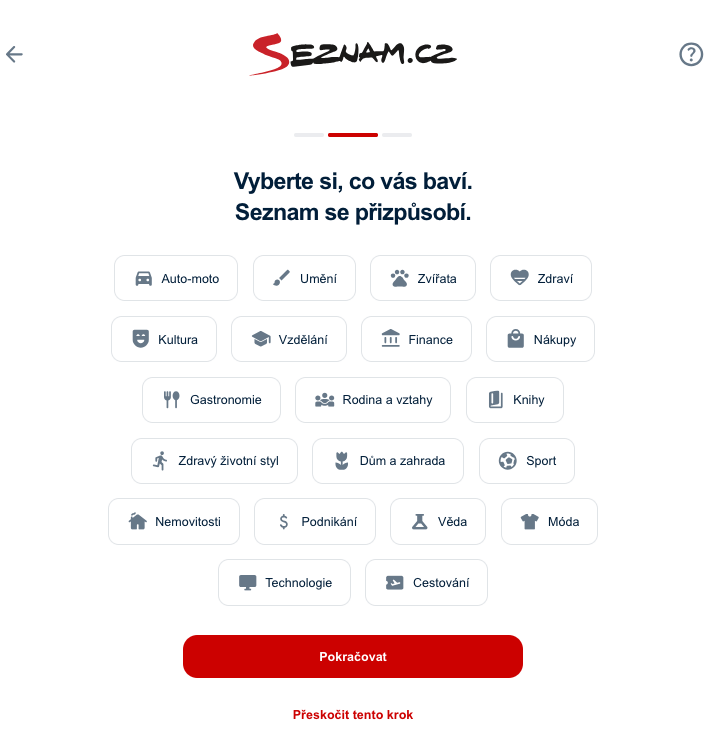 At the end of your Seznam account registration, you can choose whether to go straight to one of Seznam’s services or first set your preferences.