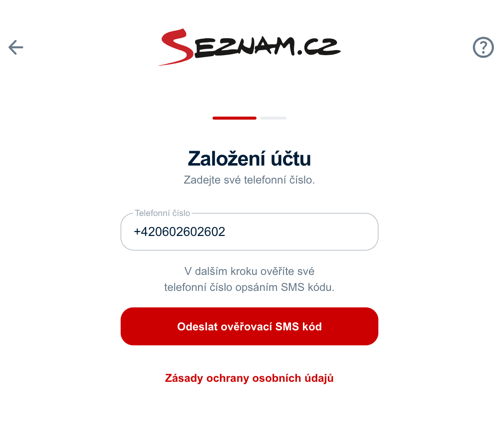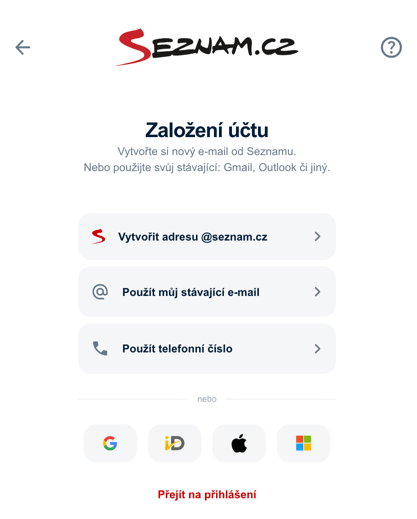 Below you’ll find instructions for registering a new user account with Seznam without using an email address.