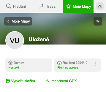 Pokud se přihlásíte na Mapy.com pod účtem, ve kterém jste zadali tyto adresy, uvidíte je v menu Moje mapy – Uložené.