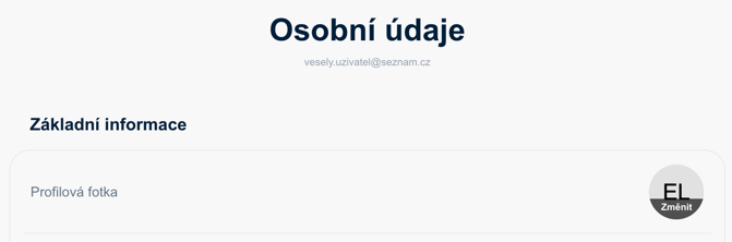 Obázek můžete upravovat po přihlášení ke svému účtu na záložce Osobní údaje, kliknutím na Změnit v části Profilová fotka.