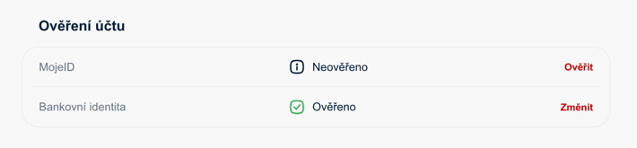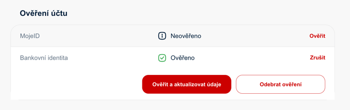 Je tedy potřeba, abyste aktualizovali své ověření bankovní identitou ve svém Účtu na stránce Osobní údaje.