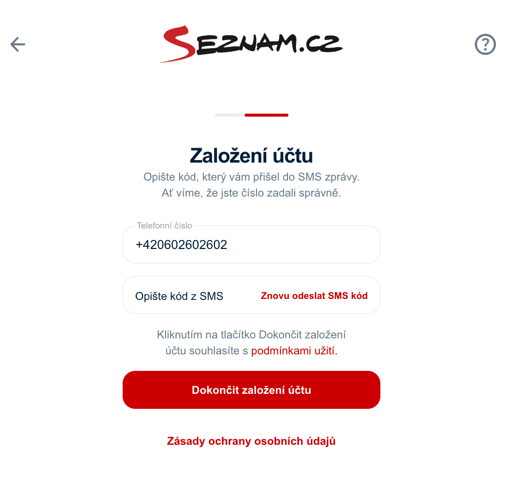 Kliknutím na Dokončit založení účtu souhlasíte s podmínkami užití účtu.