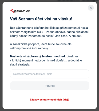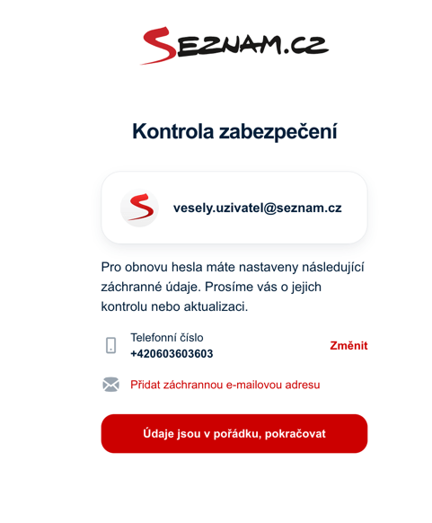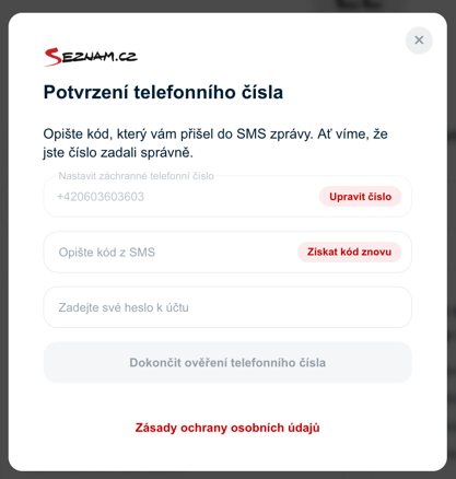 Nastavení telefonního čísla pro obnovu přístupu je u vašeho Seznam účtu povinné. Telefonní číslo vám pomůže získat přístup k účtu v případě zapomenutí nebo ztráty hesla. Abyste měli jistotu, že bude obnova přístupu stále fungovat, obracíme se na vás jednou za čas s prosbou o kontrolu a případně aktualizaci nastaveného telefonního čísla.