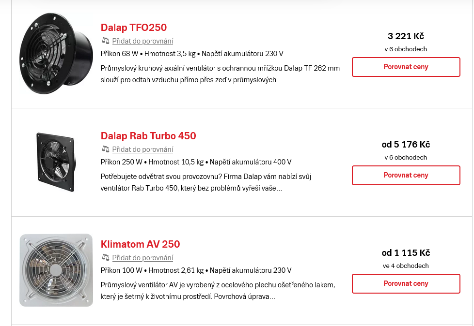 Příklad zobrazení obrázků ve vyhledávání na Zboží.cz