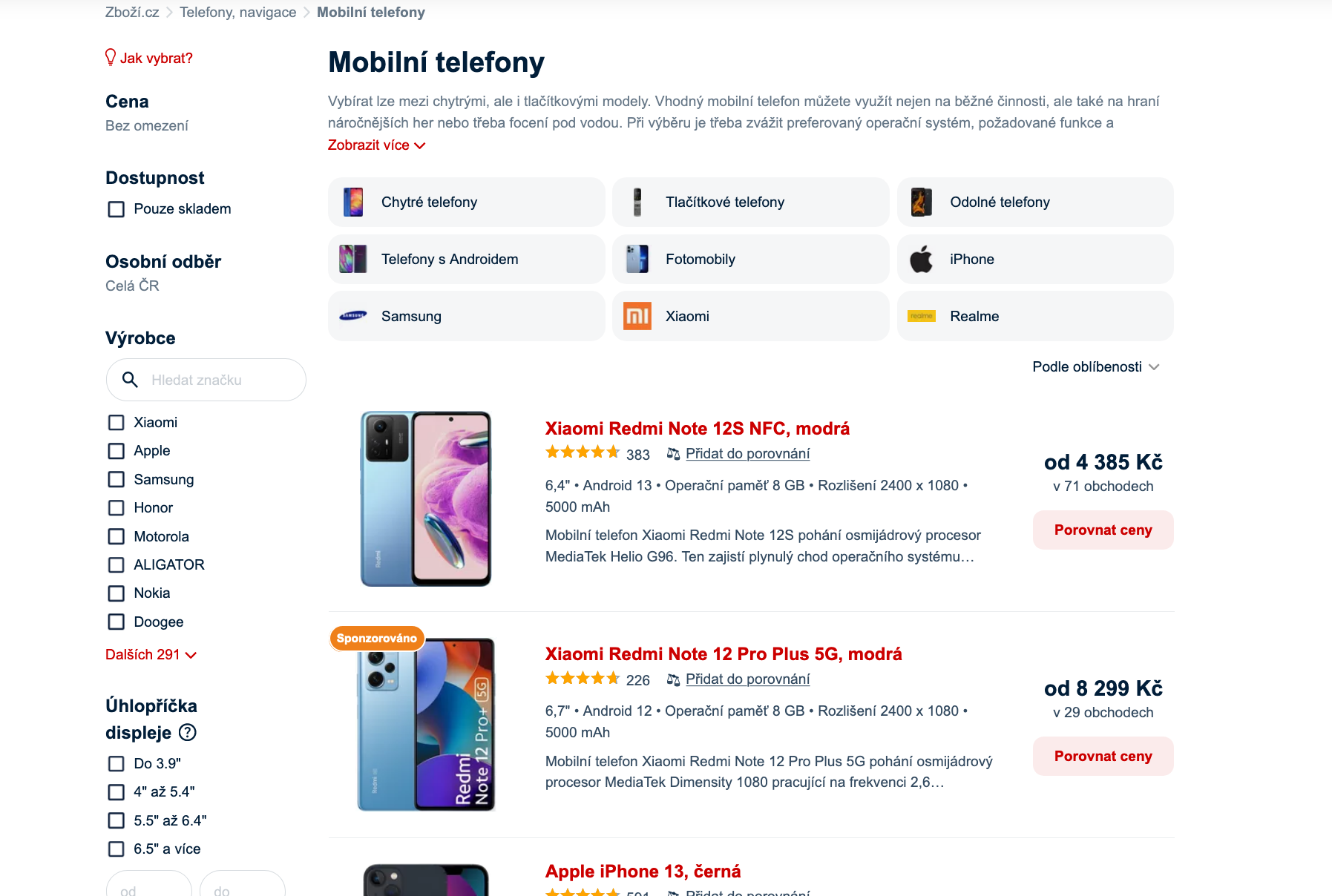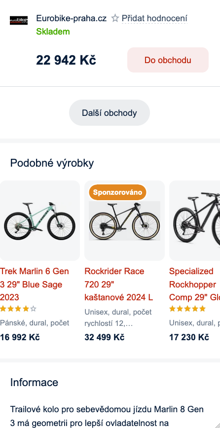 Topované produkty se zobrazují i při hledání konkurenčních výrobků, stejně tak se zobrazují i v podobných produktech u konkurence.