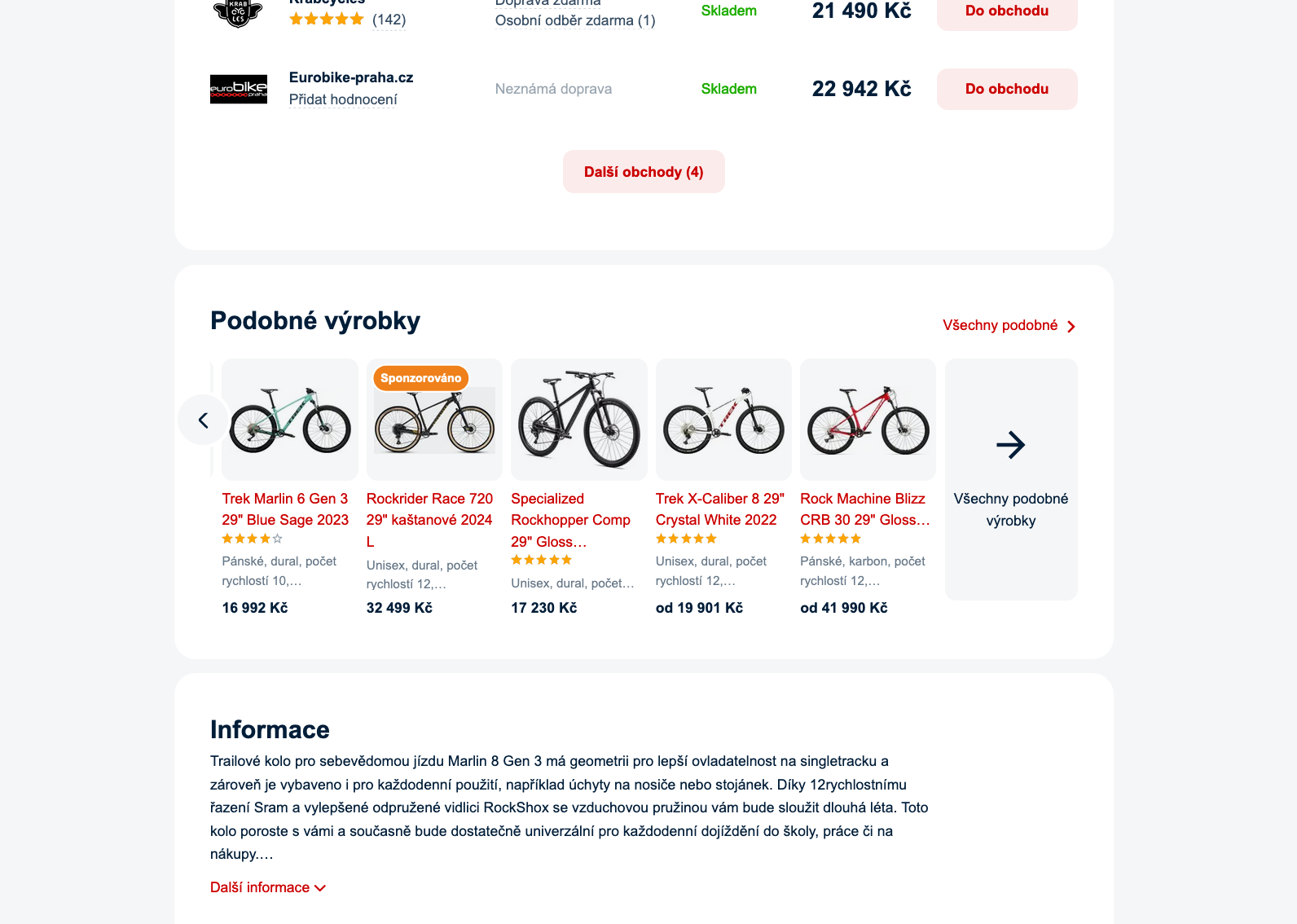 V rámci ceny si můžete zvolit 2 produkty. Jeden se zobrazí na 2. pozici a druhý na 12. pozici v rámci kategorie i relevantního hledání na Zboží.cz. Produkty se současně zobrazí i na detailu všech produktů dané kategorie v sekci “Podobné výrobky”. Topované produkty jsou promovány i v celém ekosystému Seznam.cz.
