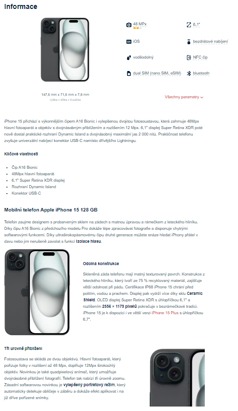 - Prolinkování na nabídku příslušenství k danému produktu.