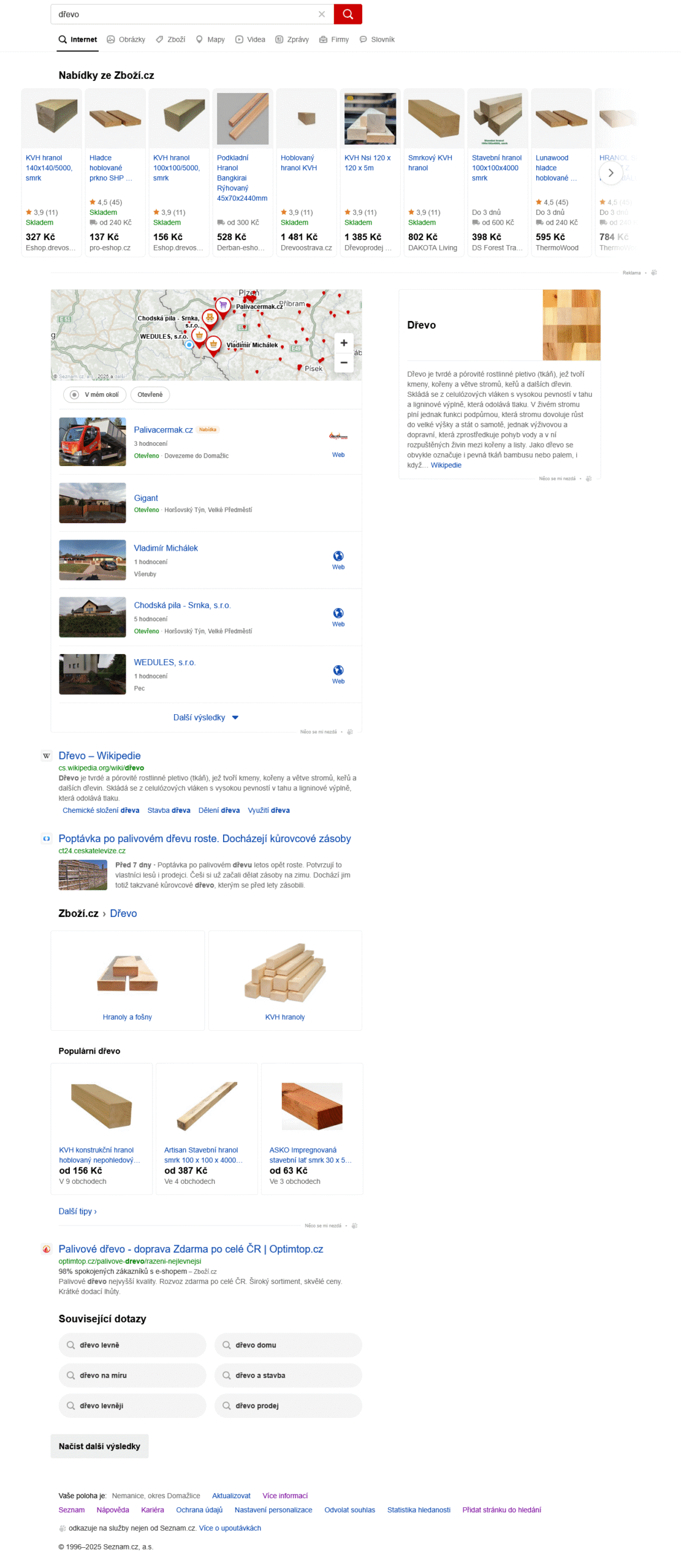 – v případě, že zadaná slova odpovídají záznamu některé z dalších služeb Seznam.cz a partnerů, se v hlavní oblasti výsledků vyhledávání mohou mezi přirozenými výsledky zobrazovat také tzv. upoutávky. Mezi přirozené výsledky jsou automaticky řazeny na takovou pozici, jaká jim odpovídá z hlediska relevance. Stránka s výsledky vyhledávání je díky tomu pestřejší a zároveň nedochází ke zhoršení její kvality.