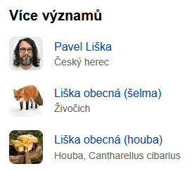 Zadát-li do vyhledávání slovo, které může mát více významů, nabídneme vám v jednoduché vychytávce na výběr ze všech významů, které známe. Stačí kliknout na ten, který vás zajímá, a zobrazí se vám odpovídající výsledky.